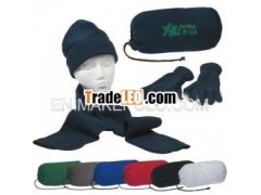 Brushed Polyester FleeceScarf, Gloves And Cap In A Drawstring Bag